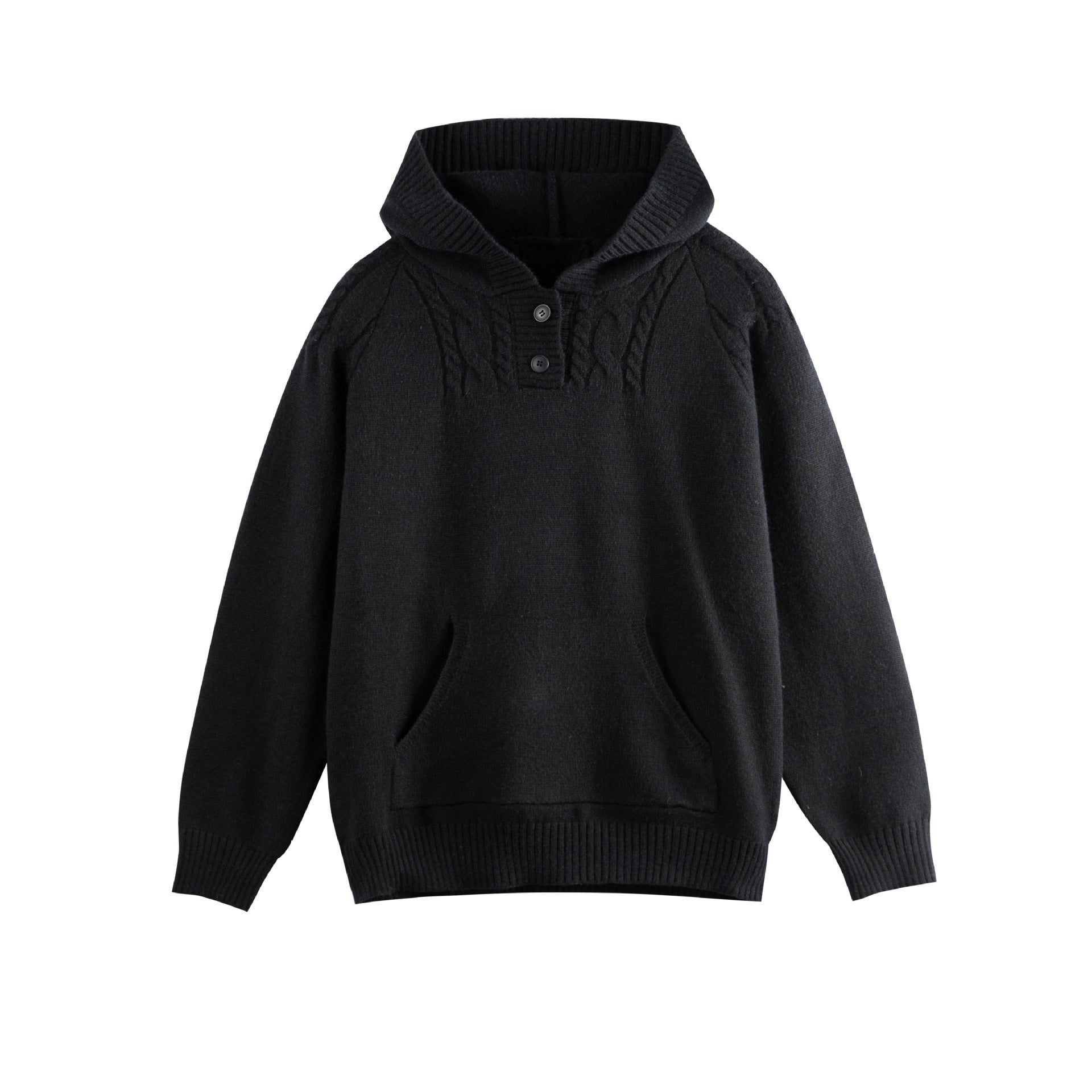 Cable Knit Half-Open Front Long Sleeved Pullover Hooded Sweater